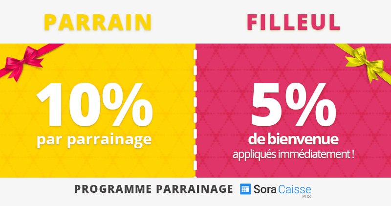 Parrainez vos amis et recevez une récompense à hauteur de 10% de la valeur totale de la commande de votre filleul. Dès son inscription, votre ami recevra également un bon de réduction d'une valeur de 5% utilisable immédiatement.