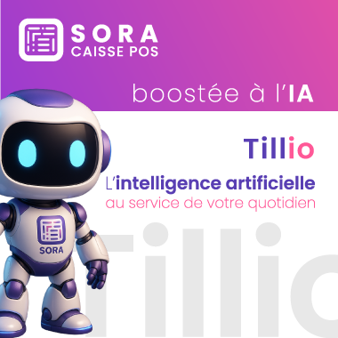 Disponible 24h/24 et 7j/7 directement dans votre interface Sora Caisse POS, Tillio représente une nouvelle génération de support intelligent, accessible à tout moment, sans interruption.