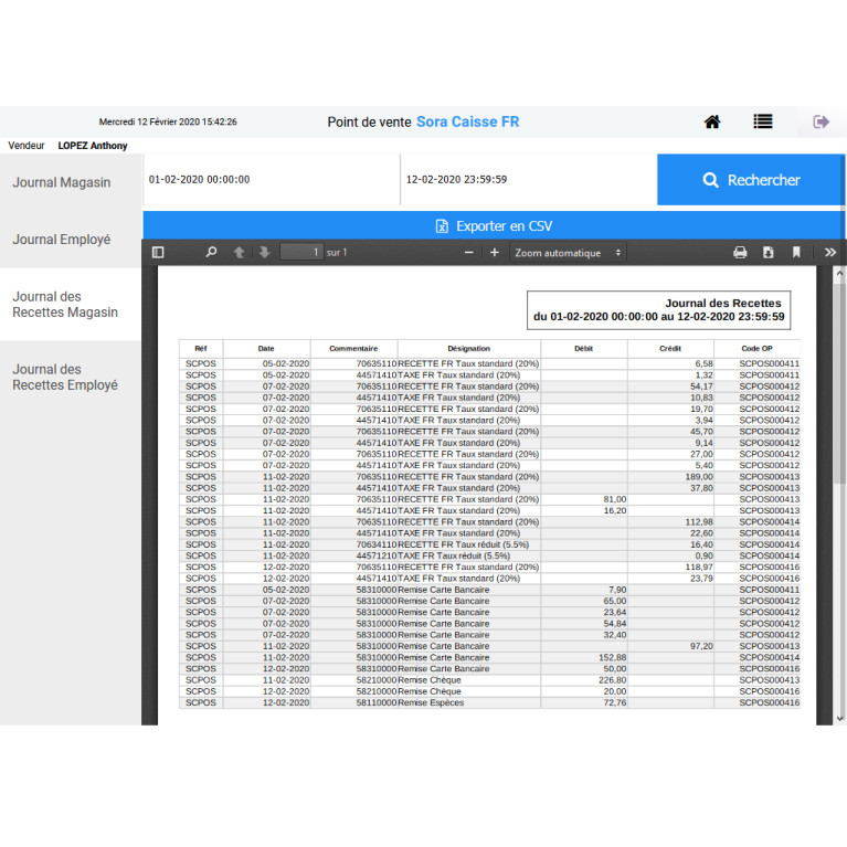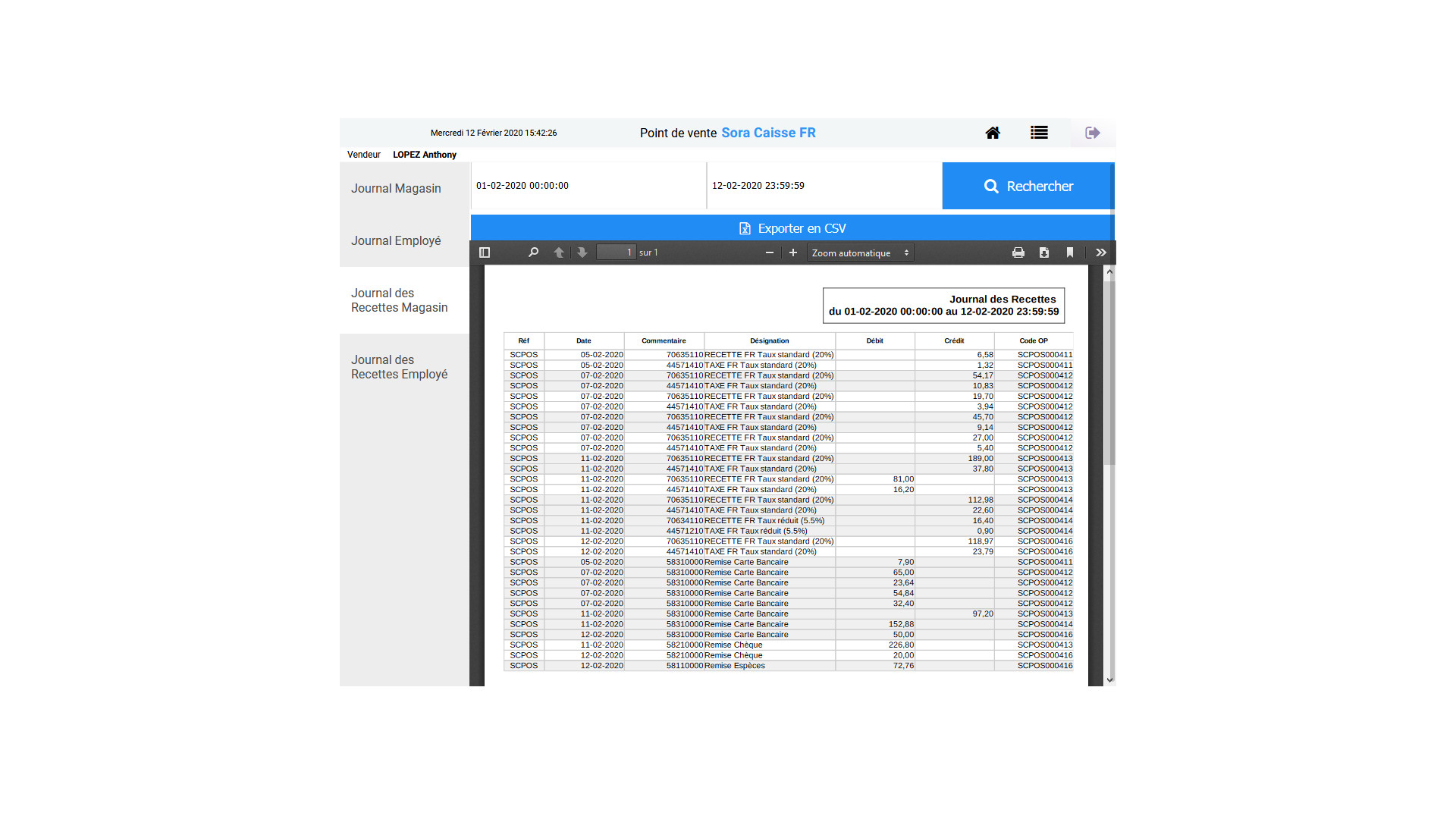 Avec la fonctionnalité additionnelle Journal des Recettes, décryptez facilement les débits et crédits de votre activité en boutique.